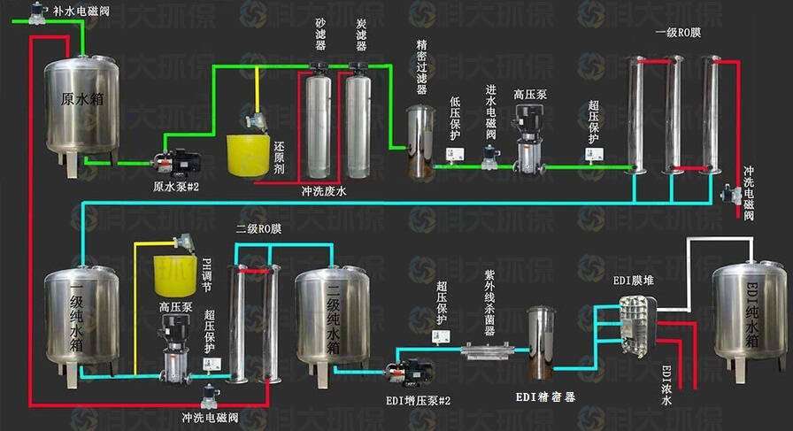 五、科大環(huán)保_EDI超純水設備工藝流程圖: